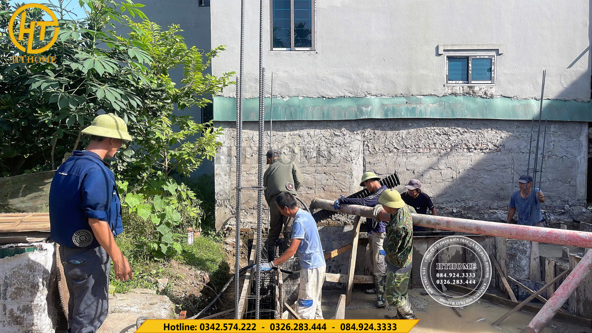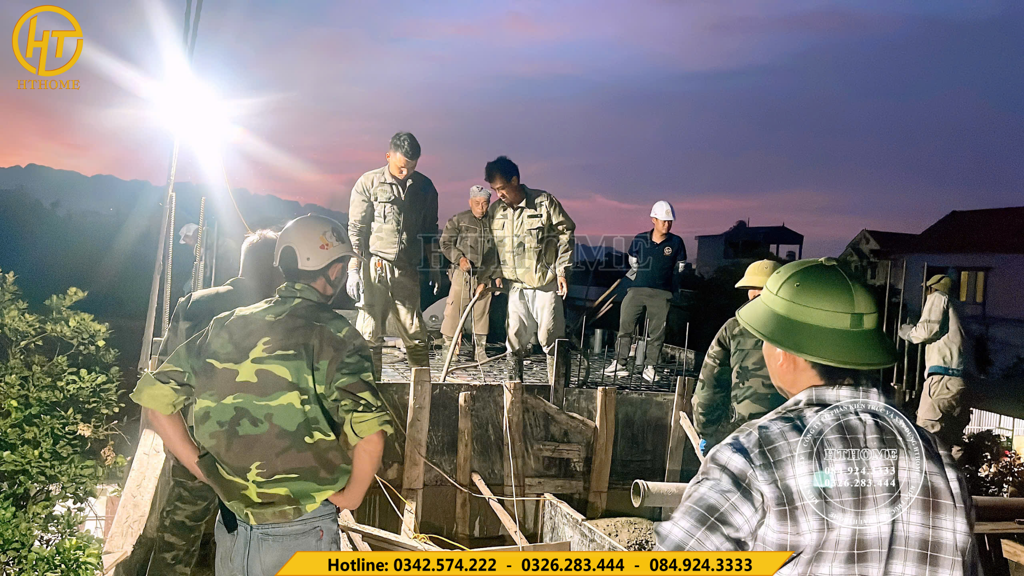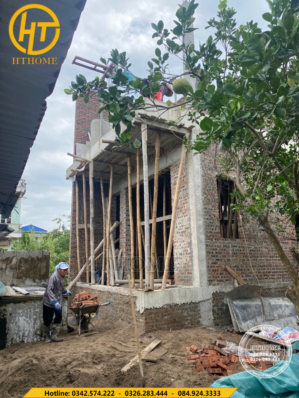 Sau khi hoàn thiện hạng mục xây tường tầng 2, công trình nhà anh Vũ tiếp tục bước sang giai đoạn quan trọng tiếp theo: đổ sàn tầng 2. Đây là quá trình thi công lớp bê tông cốt thép nhằm tạo nên mặt sàn kiên cố, vừa làm nền cho toàn bộ tầng trên, vừa giúp tăng cường khả năng chịu lực và độ bền vững cho công trình. Công đoạn này đòi hỏi sự chuẩn xác từ khâu dựng cốp pha, bố trí thép, cho đến việc đổ và đầm bê tông, đảm bảo chất lượng và an toàn tuyệt đối. Với việc hoàn thành sàn tầng 2, ngôi nhà đang dần hình thành rõ nét, từng bước vươn cao và tiến gần hơn đến dáng vóc hoàn chỉnh.