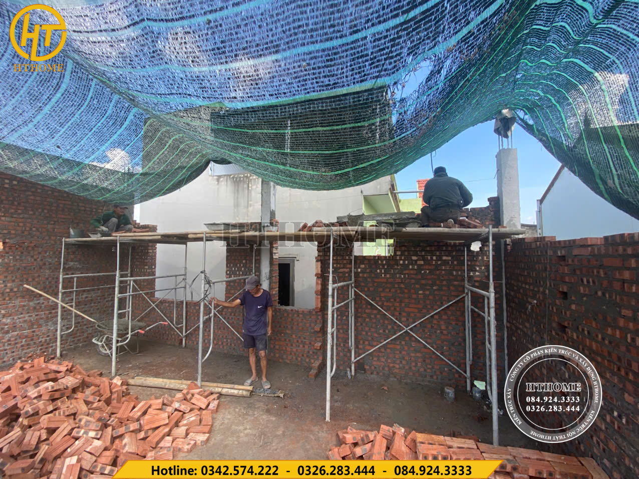 Hoàn thành hạng mục đổ mái tầng 1 nhà anh Vũ – đây là bước quan trọng trong quá trình thi công, khi lớp sàn bê tông cốt thép kiên cố đã được hoàn thiện, tạo nền vững chắc và đảm bảo khả năng chịu lực cho toàn bộ ngôi nhà. Công đoạn này không chỉ mang ý nghĩa kỹ thuật, mà còn là dấu mốc đánh dấu sự chuyển mình của công trình sau những ngày thi công tỉ mỉ, chính xác. Tiếp nối đó, ngôi nhà bước sang giai đoạn xây tường tầng 2. Từng viên gạch được đặt thẳng hàng, ngay ngắn, dần định hình nên khung cảnh sinh hoạt của tầng trên. Đây là công đoạn giúp không gian tầng 2 hiện rõ hình dáng, tạo nên sự liên kết chặt chẽ với phần móng và mái tầng dưới.