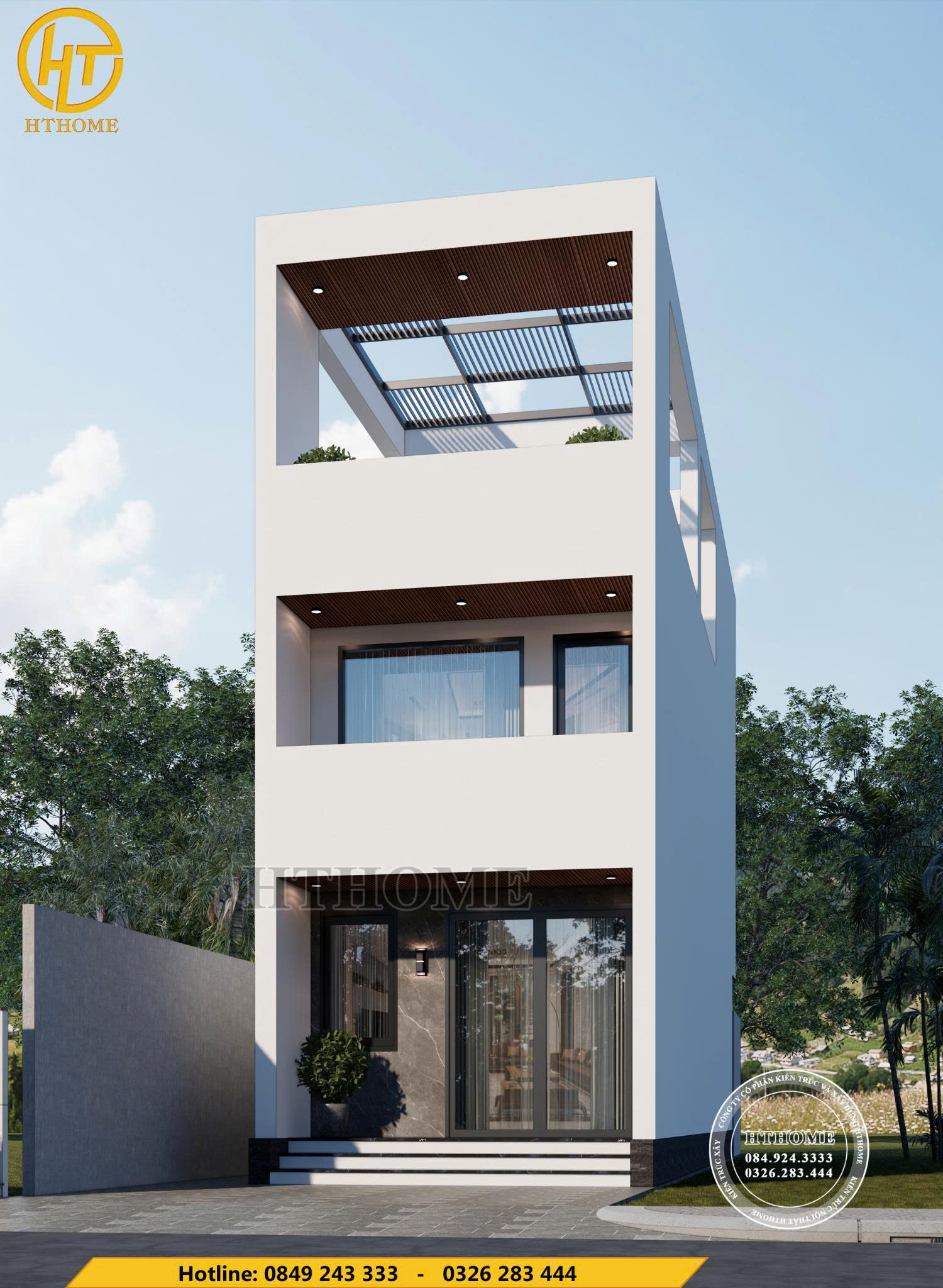 Mẫu nhà ống hiện đại 3 tầng được thiết kế theo xu hướng tối giản,...